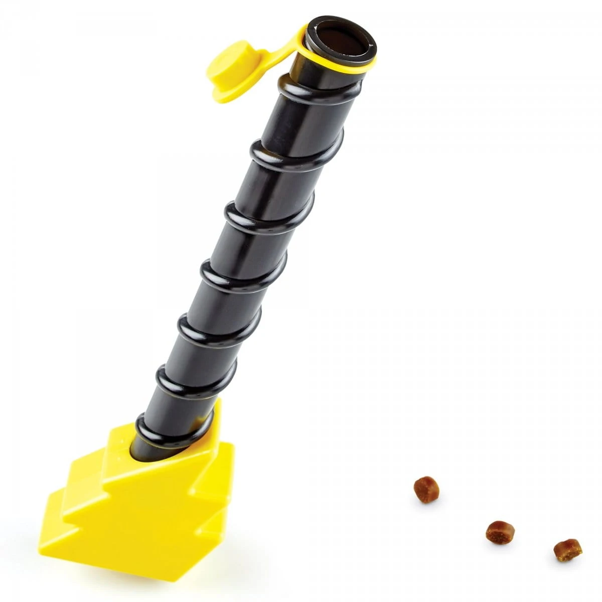 Używanie różdżki jest tak proste, jak 1-2-3 - wystarczy załadować smakołyki, przechylić różdżkę, aby napełnić dozownik na końcu i machnąć różdżką, aby rzucić smakołyki szczęśliwemu psiakowi!