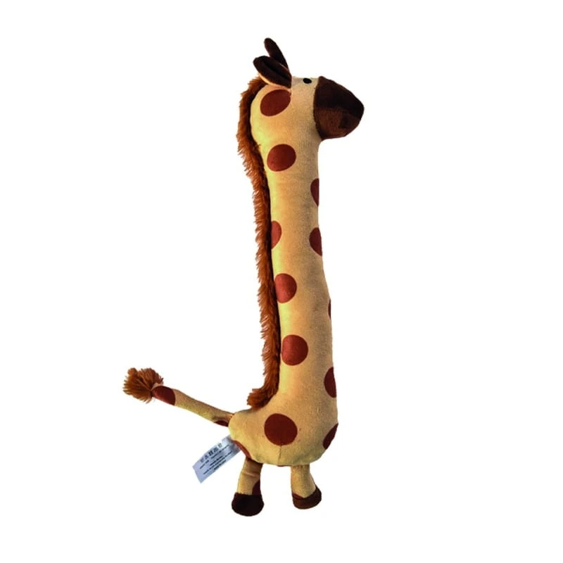 Żyrafa z dłuuuuuuuugą szyją (usztywnioną liną wewnątrz zabawki) i piszczałką, wykonana z mięciutkiego materiału. Idealna dla psów średnich i dużych, świetnie sprawdzi się do noszenia w pyszczku i ulubionych zabaw Twojego pupila.