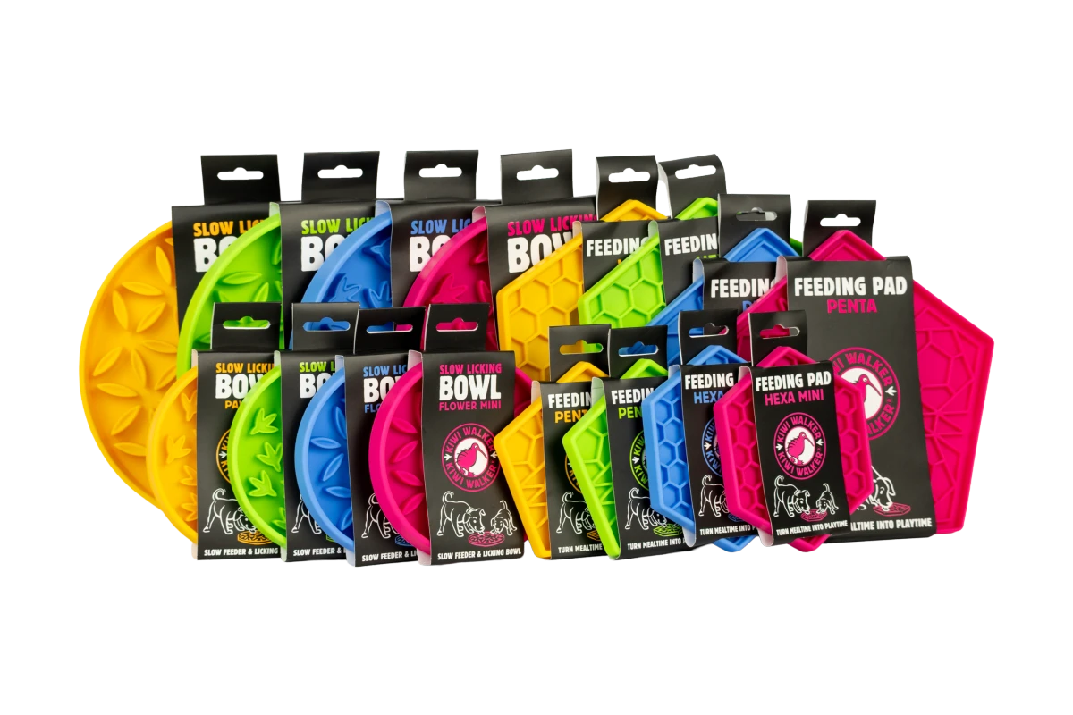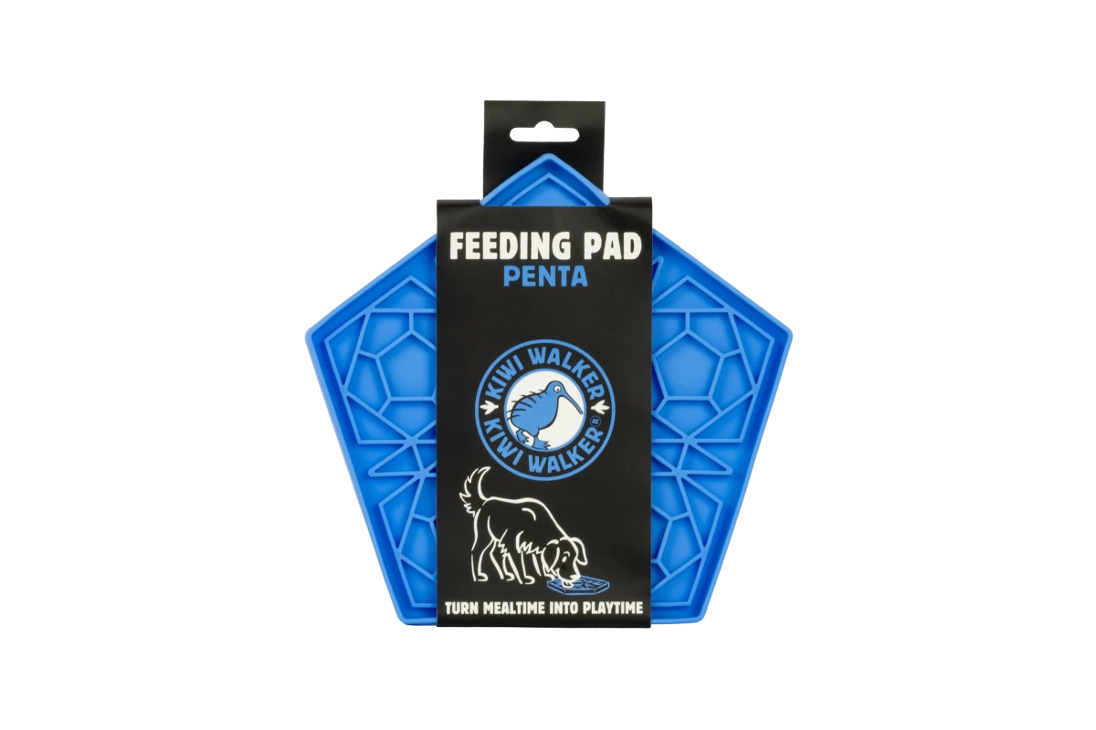 Kiwi Walker PENTA Feeding Pad Maxi w kolorze niebieskim to funkcjonalna mata do lizania dla psów i kotów, zaprojektowana z myślą o spowolnieniu jedzenia oraz wyciszeniu pupila. Charakterystyczna geometryczna struktura oparta na układzie pięciokątnym tworzy liczne zagłębienia o zróżnicowanej głębokości, które skutecznie zatrzymują pokarm i zachęcają zwierzę do wolniejszego, bardziej świadomego lizania.