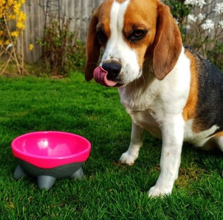 Nóżki to świetne rozwiązanie, które pozwala również na lekkie podniesienie miski, aby zmniejszyć kąt nachylenia klatki piersiowej podczas, gdy pies je/pije. Sprzyja to większej wygodzie psa.
