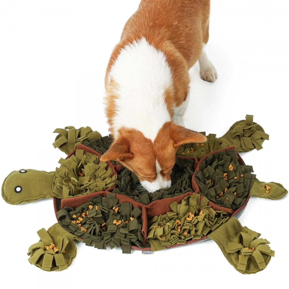 Mata węchowa o zabawnym kształcie żółwia spowoduje, że pies lub kot będzie się niespiesznie delektować jedzeniem. Będzie węszyć i szukać po zakamarkach maty ukrytych pyszności.