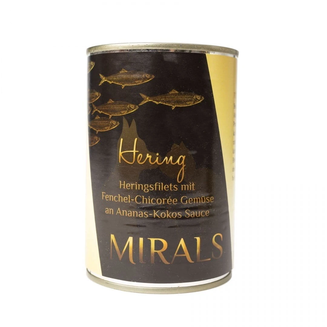 MIRALS Hering - Filety śledziowe z koprem włoskim i cykorią w sosie ananasowo-kokosowym (370g) Karma mokra dla psa