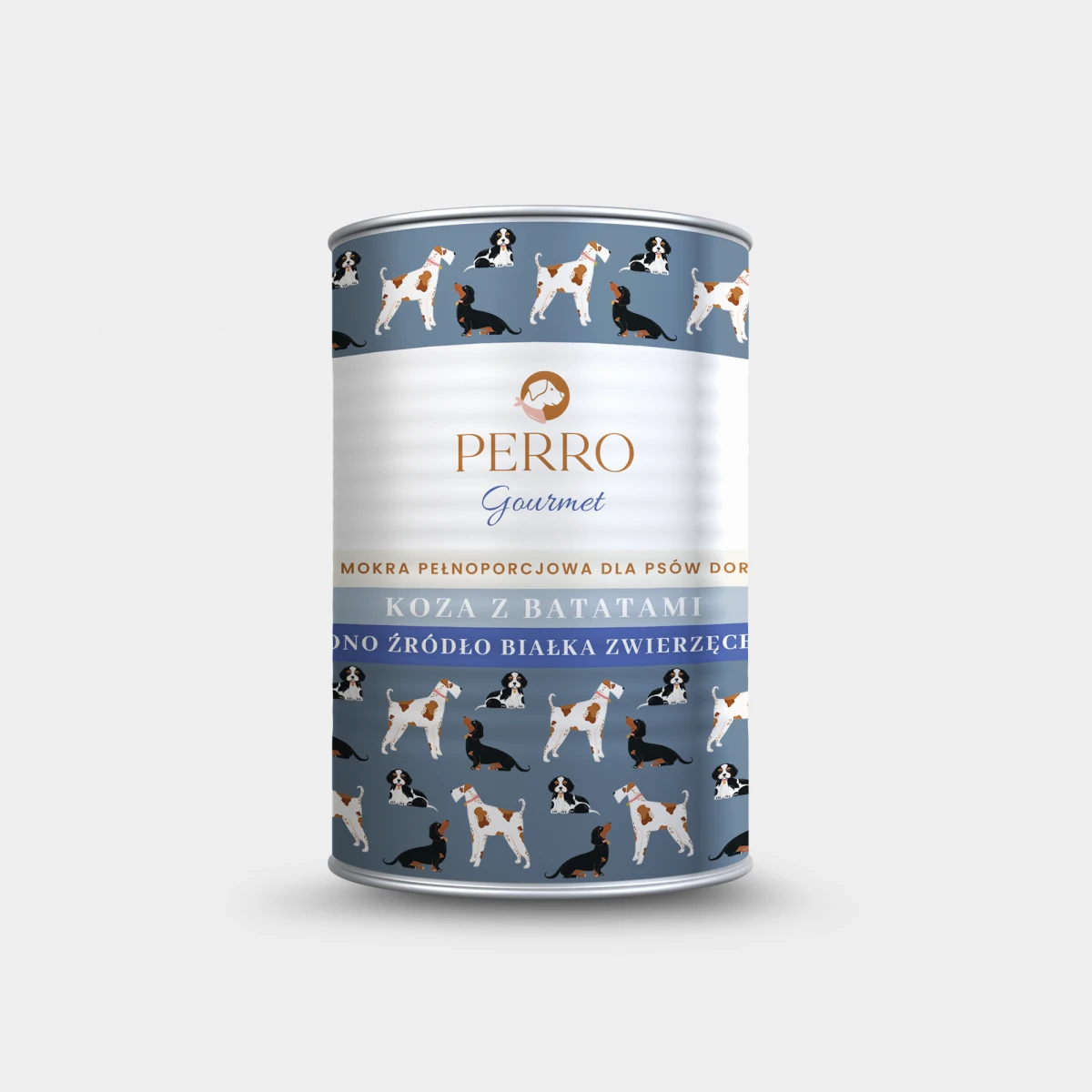 Karma mokra PERRO Koza z batatami jest bezzbożową, monobiałkową formułą dla psów dorosłych wszystkich ras. Recepturę karmy stworzyli dietetycy, opierając się o wiedzę na temat aktualnych trendów związanych ze zdrowym żywieniem czworonogów. Ta pełnoporcjowa karma mokra została również wsparta unikalną mieszanką ziół i specjalnych dodatków – superfoods.