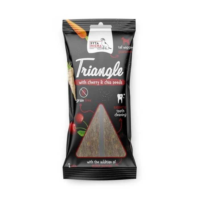 Syta Micha Trójkąt do żucia dla psa - Struś z wiśnią i nasionami chia 2 szt.