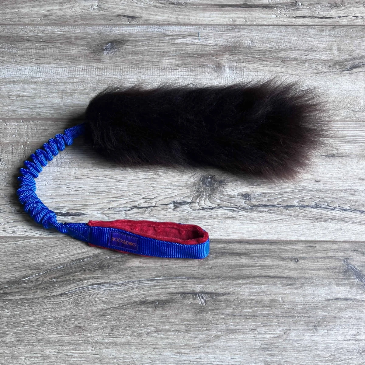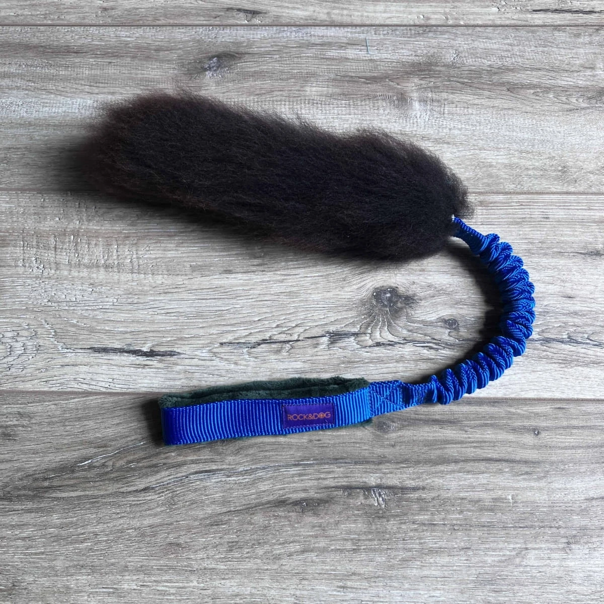 Szarpak wykonany jest z naturalnego, owczego futra oraz miękkiej taśmy.