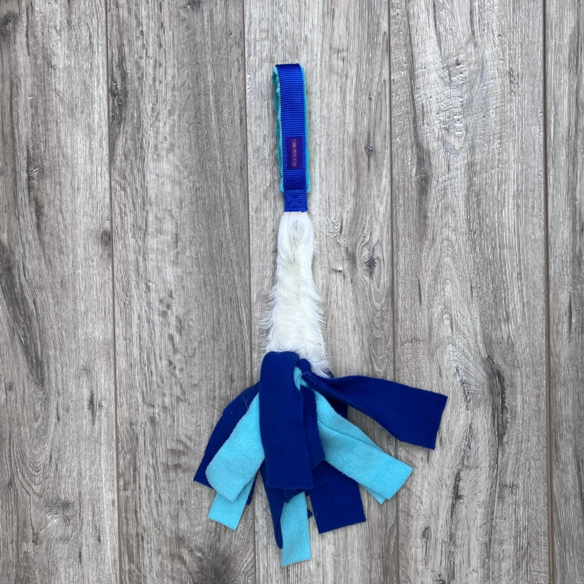Szarpak wykonany jest z naturalnego, koziego futra oraz miękkiej taśmy.