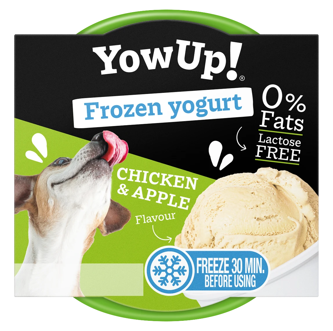 YowUp! Chicken & Apple to wyjątkowy, bezlaktozowy jogurt do mrożenia stworzony specjalnie dla psów. Pyszny, lekki i w pełni naturalny – stanowi doskonałe orzeźwienie w ciepłe dni oraz smaczną nagrodę po aktywności. Dzięki połączeniu kurczaka i jabłka jogurt jest aromatyczny, zdrowy i chętnie zjadany nawet przez wybredne psy.